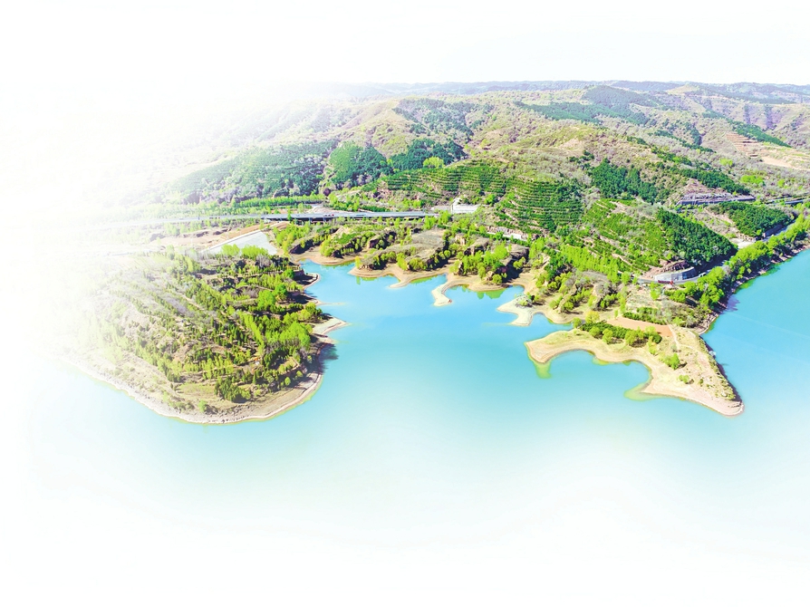 左權(quán)縣左權(quán)湖與湖岸線、樹(shù)木相互映襯,繪就一幅美麗的生態(tài)畫(huà)卷。張文軍攝