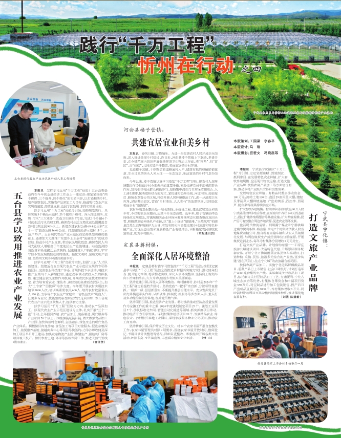 以學(xué)習(xí)運用“千萬工程”經(jīng)驗為引領(lǐng),堅持規(guī)劃先行。具體實施3個精品示范村、25個提檔升級村。深入推進廁所、垃圾、污水“三大革命”,改造衛(wèi)生廁所372座,完成3個鄉(xiāng)鎮(zhèn)6個村的生活污水治理工程,確保農(nóng)村生活垃圾收運處置覆蓋自然村比例達到96%以上。新建改建農(nóng)村公路69.4公里和“三個一號”旅游公路36.06公里。打造庭院經(jīng)濟示范村15個、示范戶75戶。五臺現(xiàn)代農(nóng)業(yè)產(chǎn)業(yè)示范區(qū)在堅持典型引路的基礎(chǔ)上,還要加大力度推廣東雷鄉(xiāng)上王全村“流量經(jīng)濟”的成功經(jīng)驗,推進鄉(xiāng)村產(chǎn)業(yè)發(fā)展,帶動農(nóng)民增收致富,確保農(nóng)民人均可支配收入增幅高于年度地區(qū)生產(chǎn)總值增速。動態(tài)監(jiān)測防貧返貧和易地搬遷后續(xù)扶持,促進脫貧人口持續(xù)增收,牢牢守住不發(fā)生規(guī)模性返貧的底線。強化文明村、星級文明戶創(chuàng)建,堅持用文明鄉(xiāng)風(fēng)浸潤美麗鄉(xiāng)村。