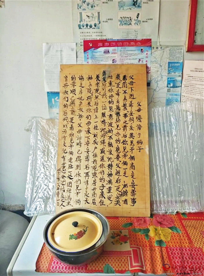 屋子里有他對孩子們事無巨細的囑咐,以及對孩子們未來的期待:“做飯開此門為排熱氣,對房屋人體有益”;“人要常存樂觀主義,人生樂觀、身心健康,能孝養(yǎng)父母、教育子女如何做人,不與不孝人交,教子女要敬養(yǎng)雙方父母,學(xué)會懂法、守法”。