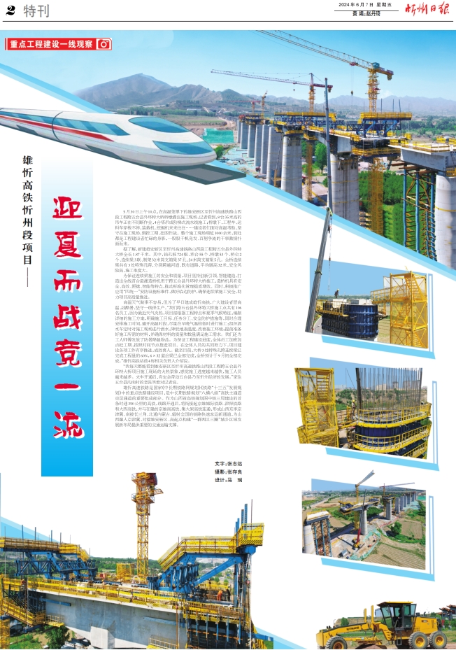 5月30日上午10點(diǎn),在高溫籠罩下的雄安新區(qū)至忻州高速鐵路山西段工程跨五臺(tái)縣外環(huán)特大橋橋墩灌注施工現(xiàn)場,記者看到,8臺(tái)35米高的吊車正在不間斷作業(yè),4臺(tái)塔吊成階梯式流水線施工;橋墩下,工程車、運(yùn)料車穿梭不停,裝載機(jī)、挖掘機(jī)來來往往……建設(shè)者們面對高溫考驗(yàn),堅(jiān)守在施工現(xiàn)場,倒排工期、掛圖作戰(zhàn)。整個(gè)施工現(xiàn)場綿延1000余米,到處都是工程建設(shè)者忙碌的身影,一股股千帆競發(fā)、百舸爭流的干事激情撲面而來。