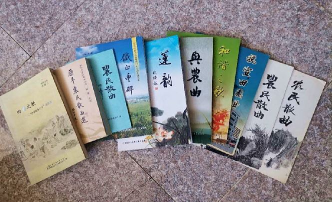 成員們的執(zhí)著與熱愛也結(jié)出了累累碩果。16年來,原平農(nóng)民散曲社陸續(xù)自費(fèi)編輯出版了《興農(nóng)曲》《鐵血豐碑》《農(nóng)民散曲選》《田籟之歌》等10多冊(cè)農(nóng)民詩(shī)曲集,免費(fèi)發(fā)給群眾閱讀;先后共創(chuàng)作散曲作品4萬(wàn)余首,在省級(jí)以上書報(bào)刊物發(fā)表作品4000余首;噴繪展板300余幅,在各鄉(xiāng)村農(nóng)貿(mào)集市、戲場(chǎng)、廟會(huì)、婚慶等場(chǎng)地懸掛展出宣講200多場(chǎng)次,受眾達(dá)2萬(wàn)人以上;利用現(xiàn)代網(wǎng)絡(luò)創(chuàng)辦微刊,現(xiàn)已發(fā)表作品300余期,在弘揚(yáng)和發(fā)展中華優(yōu)秀傳統(tǒng)文化中起到了事半功倍的作用。