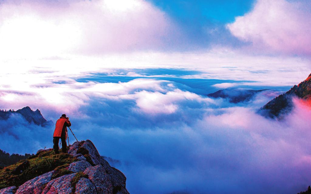 正是金風(fēng)送爽馬蹄急。華北最大的亞高山草甸,因山體像一柄碩大的荷葉而得名,荷葉坪呈現(xiàn)眼前。海拔2784米,駱駝石峰、荷葉長老、文殊雄獅、石柵馬樁、北齊長城、六郎將臺(tái)、 漣異水、雪山積素八景傳神又傳奇,且大多為石峰石人、石臺(tái)石城。這般石景,直教悟空心潮起伏。他想,臨出汾源時(shí),曾在樓子山南的支鍋奇石上立足良久,千年萬載,三石相支。