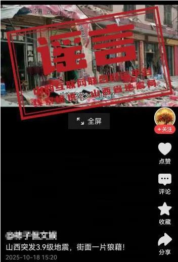 10月18日,有網民發(fā)布“山西突發(fā)3.9級地震,街面一片狼藉!”相關信息,引發(fā)網民關注,經向相關部門確認,該信息與事實不符。