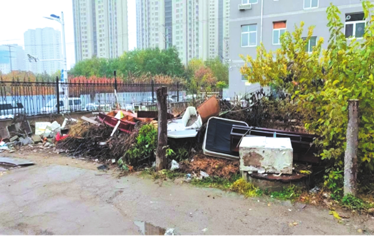 忻府區(qū)九原西街惠民小區(qū)19號樓東北側(cè)存在垃圾亂堆放現(xiàn)象。