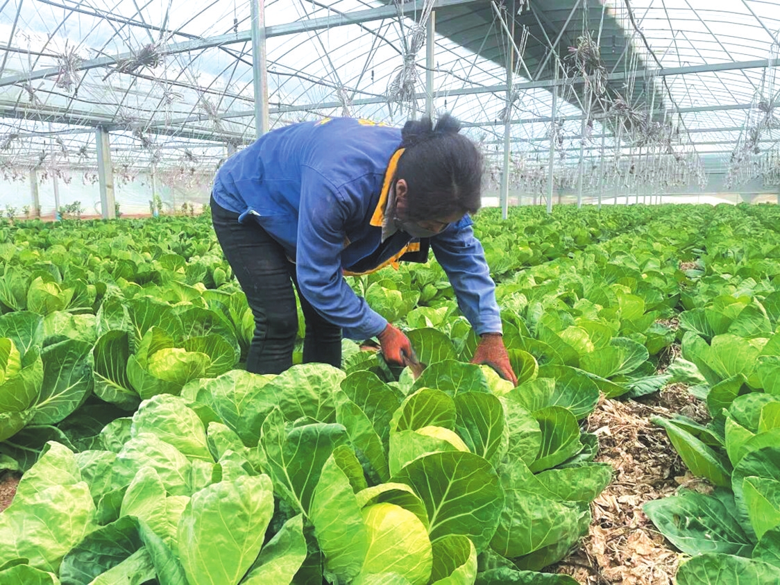 “這棚茴子白是9月定植的,采收周期一個(gè)多月左右,品種為‘霸道400’。溫室大棚種植,溫度、濕度、土壤墑情能精準(zhǔn)控制,比露天種植早上市近一個(gè)月,口感和品相也更好,畝產(chǎn)能達(dá)到7000斤?!焙献魃缲?fù)責(zé)人侯學(xué)光一邊介紹,一邊俯身?yè)荛_菜葉察看長(zhǎng)勢(shì)。為突破傳統(tǒng)種植模式,合作社引入智能增溫設(shè)備與精準(zhǔn)噴灌系統(tǒng),實(shí)現(xiàn)水肥按需輸送,不僅減少人工投入、降低種植成本,還讓茴子白長(zhǎng)勢(shì)穩(wěn)健、成活率大幅提升,種植效益顯著提高。