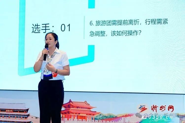 決賽現(xiàn)場(chǎng)亮點(diǎn)紛呈,選手們以生動(dòng)語言勾勒忻州文旅全景:有的以 “行走‘忻’長(zhǎng)城” 為主題,串聯(lián)偏關(guān)老牛灣、代州邊靖樓的邊塞傳奇;有的聚焦 “探訪‘忻’建筑”,解讀應(yīng)縣木塔的營(yíng)造技藝與佛光寺的千年底蘊(yùn);還有的通過 “自在‘忻’生活” 主題,將寧武毛健茶、忻府區(qū)面塑等非遺元素融入講解,讓觀眾沉浸式感受地域文化魅力。在模擬帶團(tuán)環(huán)節(jié),選手們針對(duì) “游客突發(fā)不適”“行程臨時(shí)調(diào)整” 等真實(shí)場(chǎng)景快速響應(yīng),展現(xiàn)出扎實(shí)的職業(yè)素養(yǎng)與應(yīng)變能力。