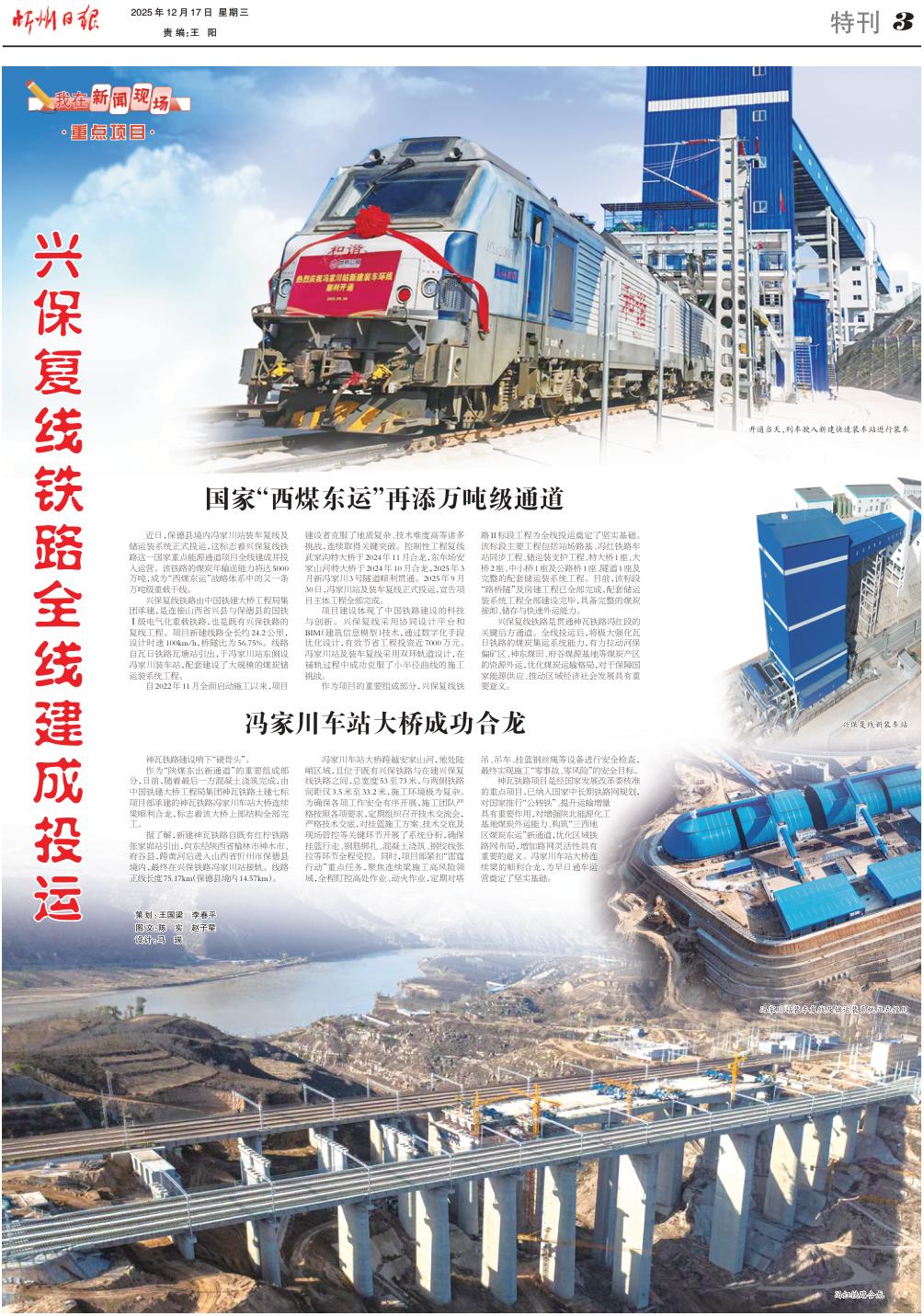 近日,保德縣境內(nèi)馮家川站裝車復線及儲運裝系統(tǒng)正式投運,這標志著興保復線鐵路這一國家重點能源通道項目全線建成并投入運營。該鐵路的煤炭年輸送能力將達5000萬噸,成為“西煤東運”戰(zhàn)略體系中的又一條萬噸級重載干線。