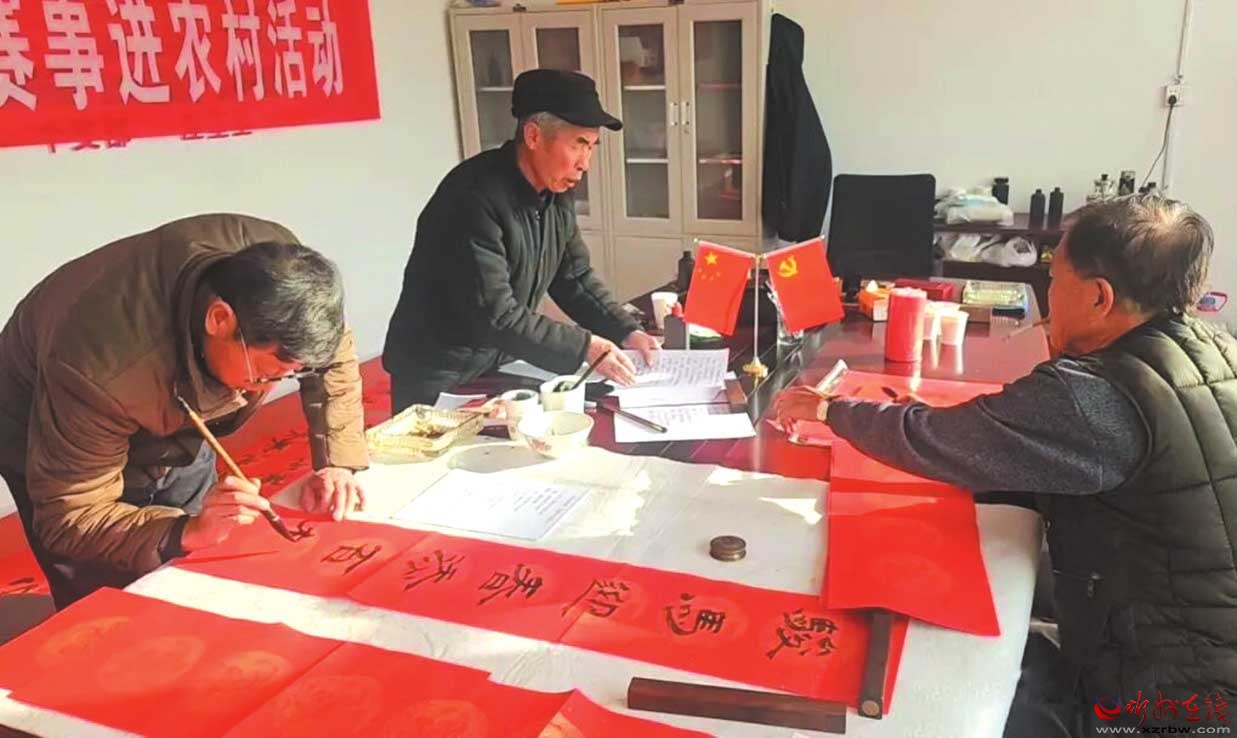 “文化進(jìn)村·春聯(lián)送?!毙履陮憣β?lián)活動現(xiàn)場。