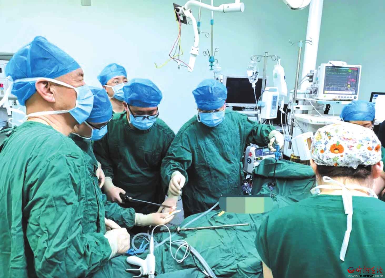 僅半小時,全部術前準備就緒,普外科李瑞環(huán)主任、普外二病區(qū)婁月紅主任上臺,實施腔鏡探查。術中證實,患者脾臟被膜破裂,腹腔內積血量達1500—2000毫升,出血迅猛、病情萬分危急。兩位主任臨危不亂、果斷處置,憑借豐富臨床經(jīng)驗與嫻熟操作技能,沉著應戰(zhàn)、精準施治,快速鉗扎止血、有效控制出血,歷時一個半小時順利完成脾切除術。從決策手術到手術結束,全程僅約2小時,以“快、準、穩(wěn)”跑出生命救治“加速度”。目前,患者病情穩(wěn)定、恢復良好。
