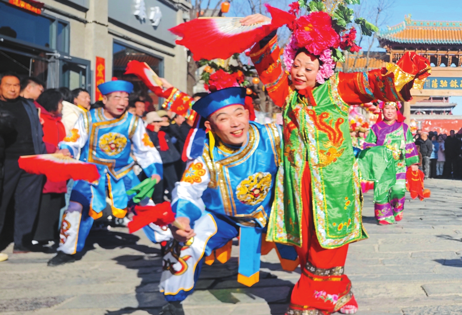 遼寧撫順地秧歌在忻州古城演出。王林俊攝