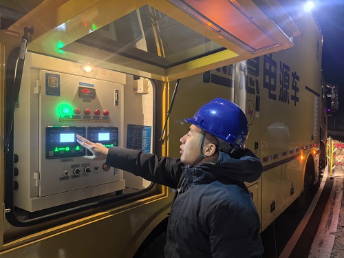 夜色徹底吞沒山巒,氣溫驟降至零下,遠(yuǎn)處山影只剩模糊輪廓。保電隊(duì)員們裹緊工裝,在寒風(fēng)里反復(fù)校驗(yàn)接線端子。23時(shí)40分,隨著合閘指令下達(dá),第一輛中壓發(fā)電車正式啟動,低沉的轟鳴在山谷間回蕩,穩(wěn)定電流順利注入線路。來不及片刻休整,隊(duì)員們又馬不停蹄地奔赴下一個(gè)點(diǎn)位。