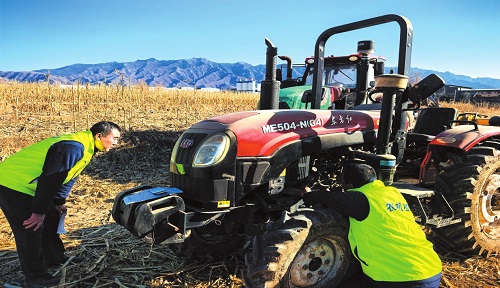 技術(shù)人員正對拖拉機(jī)進(jìn)行全面“體檢”。 郭婧蕾攝
