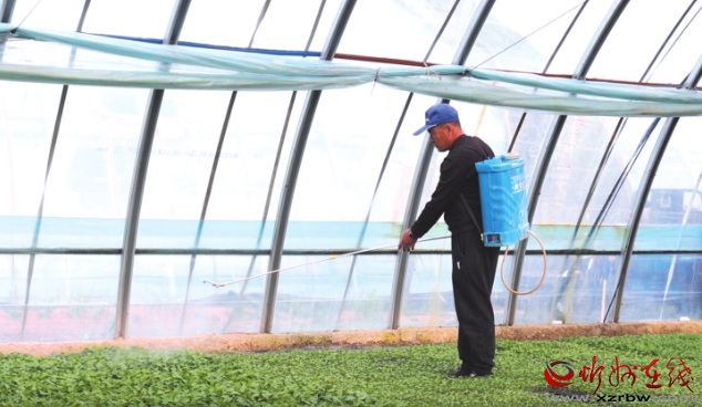 圖為辣椒育苗大棚內(nèi),農(nóng)戶正精心管護辣椒幼苗。