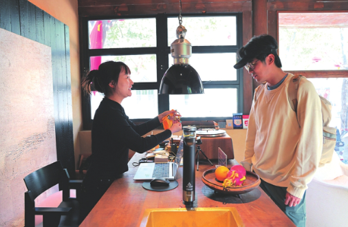 在忻州古城“聽初”民宿,店長朵朵正在為住客辦理入住業(yè)務。 暢 雪 張 媛攝
