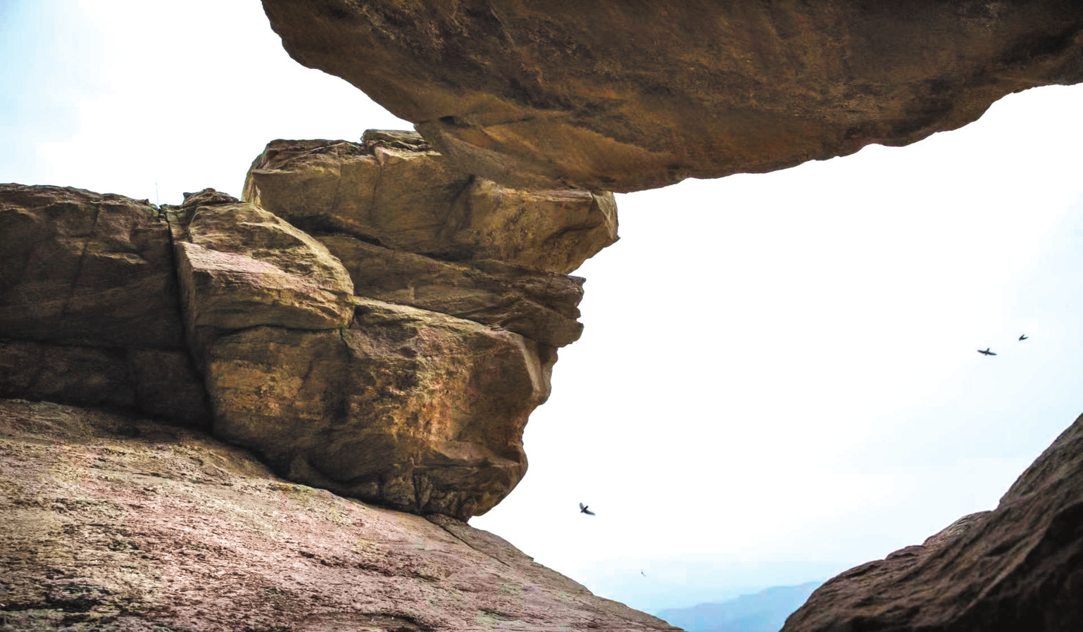 靜樂巾字山全景 古寺千秋畫, 奇巖一泓潭。 靜樂巾字山因山巔兩峰對(duì)峙如古人束發(fā)之“巾”,故名巾字山。山名,既描摹了山的形態(tài),又賦予了它幾分輕柔的意蘊(yùn),與北方山川的雄渾形成了奇妙的反差。這座海拔兩千余米的山峰,不僅是晉北黃土高原上的一抹靈秀,更因“巾巖瀨雨”的奇景躋身于“靜樂八景”。這座不算巍峨的山峰,卻像一部立體的典籍,記載著地理的脈絡(luò)、歷史的煙塵、文化的密碼與自然的靈秀,以它獨(dú)有的厚重與清幽,成為靜樂大地上一枚溫潤(rùn)的印記。 攬勝:天工開物的坐標(biāo) 巾字山位于靜樂縣東北娑婆鄉(xiāng)大神溝與大會(huì)村之間。山系橫亙連綿,主峰巍峨挺拔,峭壁嶙峋。 從高空俯瞰巾字山,它宛如一塊巨大的翠玉,鑲嵌在廣袤的大地之上。頂部的巖石構(gòu)成了獨(dú)特的“巾”字形輪廓,在周邊山巒的襯托下,格外醒目。其山巖突兀,有的如利劍直插云霄,有的似巨獸伏地,形態(tài)各異,讓人嘆為觀止。山間常年云霧繚繞,為巾字山增添了一份神秘的色彩。云霧時(shí)而如輕紗般籠罩著山峰,時(shí)而如洶涌的波濤在山谷間翻滾。在陽光的照耀下,云霧呈現(xiàn)出五彩斑斕的色彩,如夢(mèng)如幻,讓人仿佛置身于仙境之中。