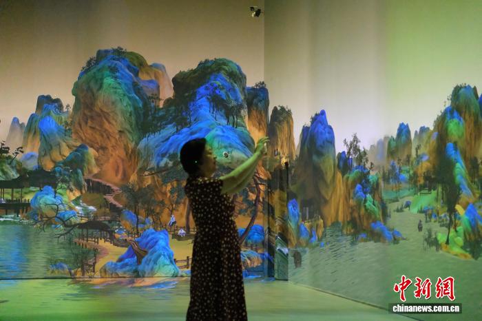 7月16日,游客在“大系”典藏館內(nèi)體驗“光影丹青”項目。曹丹 攝