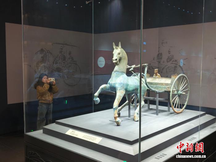 2月6日,游客在資陽(yáng)市博物館打卡被譽(yù)為“中國(guó)漢代第一車”的資陽(yáng)銅車馬。陳選斌 攝
