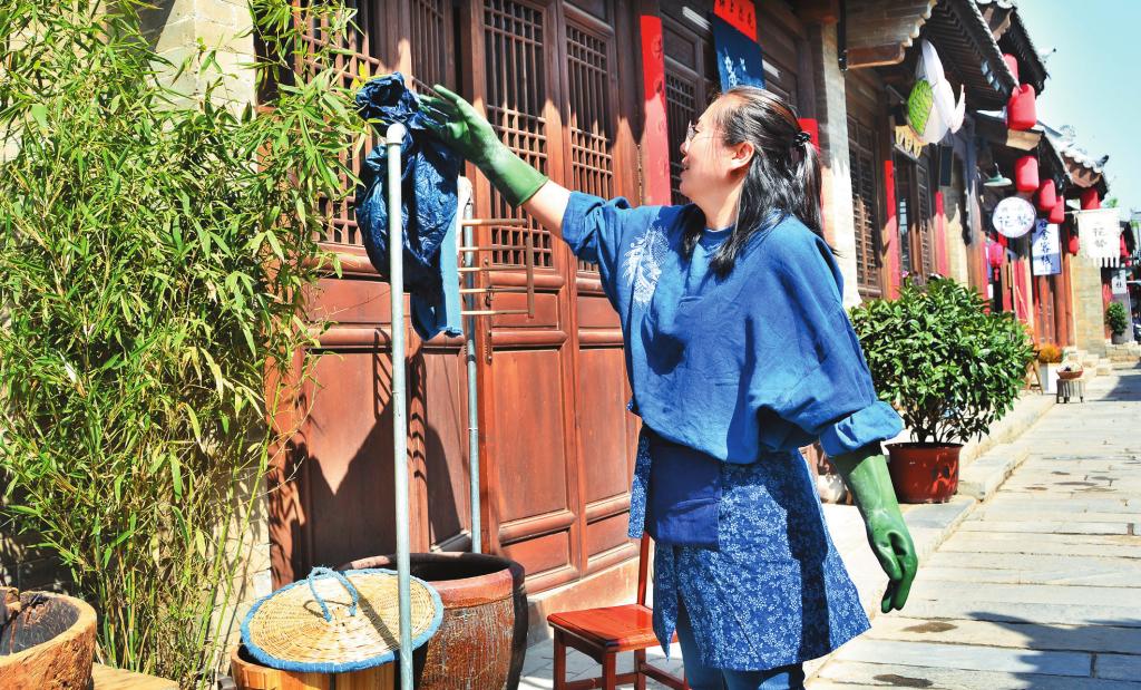 趙慧說(shuō),古城文創(chuàng)街的店鋪給了手工藝人更多的可能性和幸福感。以前大多是因?yàn)闊釔?ài),自己四處找了染材做著玩,身邊的朋友們口口相傳,遇見(jiàn)喜歡的就收走,現(xiàn)在有了古城的平臺(tái),更多的人認(rèn)識(shí)了草木染,更多喜歡傳統(tǒng)文化、講究生活品質(zhì)的朋友們愛(ài)上了這樣的作品。趙慧守著小店,染染布、縫縫包、種種花、喝喝茶,把自己的熱愛(ài)和鉆研一顏一色染進(jìn)布里,一針一線縫到作品中。通過(guò)那些有趣和有創(chuàng)意的作品,她覺(jué)得生活更加溫馨了。