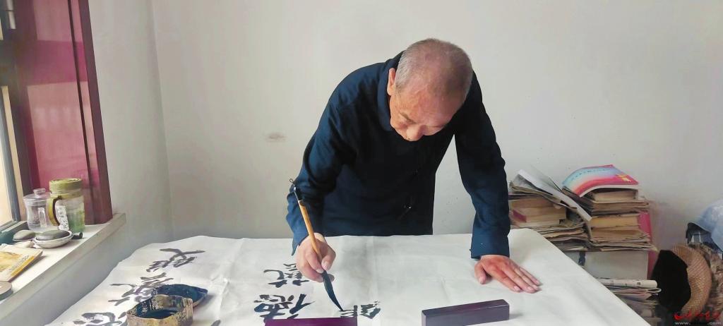 為了練字,他連手機(jī)也不買,惹得好多親朋好友找不到他。他橫下一條心,一個(gè)字可以練千遍、萬遍;一支毛筆握在手心不離不棄,天天寫,月月寫,年年寫,這一寫就寫了26年。為了寫好一個(gè)字,弄懂一個(gè)字,他不知道要練習(xí)多少遍,查多少次字典。由寫字到學(xué)文,他選擇了“四大名著”。古人筆錄者層出不群,“眼過千遍,不如手過一遍”。抄書不僅練習(xí)了書法,怡養(yǎng)性情,關(guān)鍵是補(bǔ)習(xí)了博大精深的中國文化。