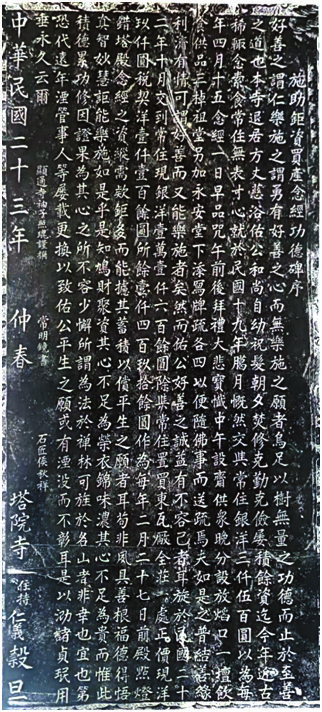 五臺(tái)山碑文書法以楷書居多,大部分傳承了唐楷工整嚴(yán)謹(jǐn)?shù)娘L(fēng)格。其中有的受歐陽(yáng)詢、褚遂良瘦硬書風(fēng)影響,如明正德皇帝敕御馬監(jiān)太監(jiān)韋敏碑拓片,寫得堅(jiān)硬勁拔,用筆靈動(dòng)飄逸;有的受顏真卿作品雄渾豪放之風(fēng)影響,用筆提按明顯,體態(tài)豐厚;也有的受柳公權(quán)險(xiǎn)勁瘦硬書風(fēng)熏陶,如塔院寺拓片,字體瘦硬,骨力遒勁,結(jié)體嚴(yán)謹(jǐn)。這些楷書作品用筆質(zhì)樸無(wú)華,結(jié)構(gòu)布局自然,多出自民間書法愛好者之手。他們憑借毛筆、鑿刀等簡(jiǎn)易工具,依據(jù)個(gè)人偏好進(jìn)行模仿,不刻意追求技巧精妙,而是隨心所欲地刻出形態(tài)各異的字體。
