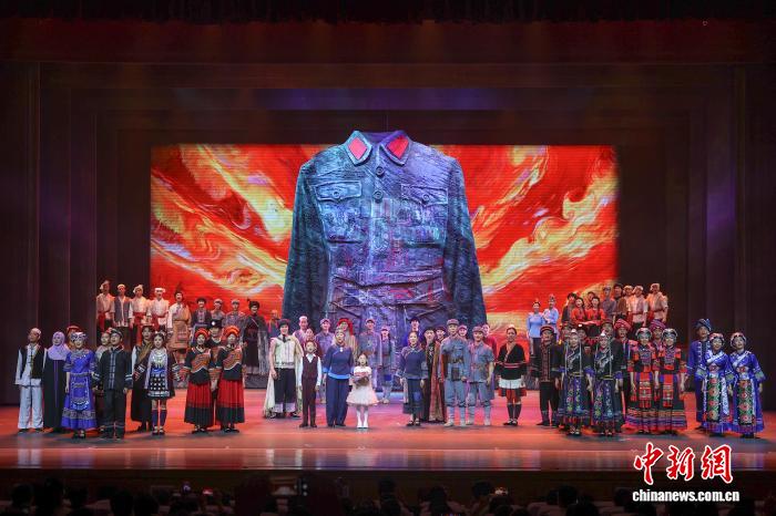 圖為9月23日,原創(chuàng)民族歌舞劇《五彩紅軍衣》首演現(xiàn)場(chǎng)。劉力鑫 攝