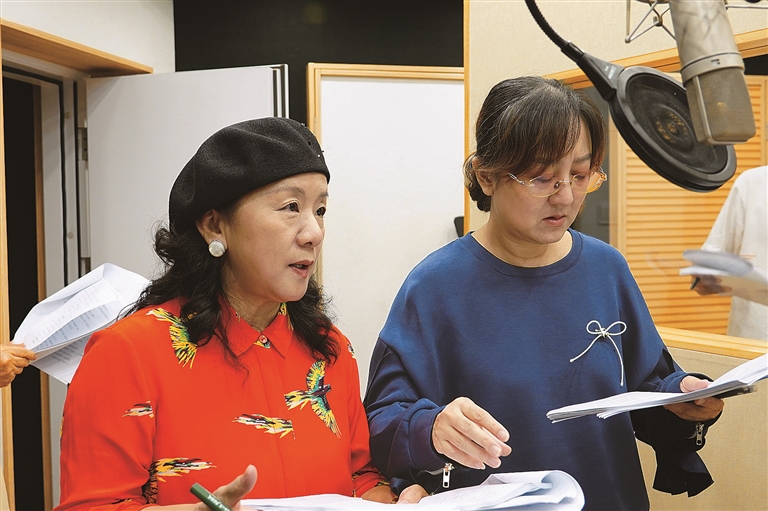 在廣播劇中,女主人公閆美麗由演員閻萌萌配音(右);演員伍鳳春(左)為劇中角色吳媛媛配音。