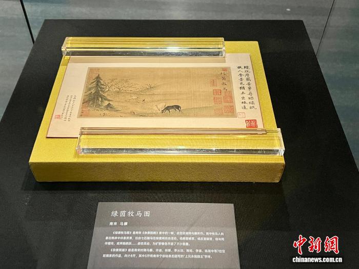 杜芝明稱,為系統(tǒng)闡釋馬文化的深厚內(nèi)涵,該館對相關(guān)館藏文物進(jìn)行了全面細(xì)致梳理。其中,被譽(yù)為“鎮(zhèn)館之寶”的南宋《雜景院畫》冊頁里,一幀珍貴的《綠茵牧馬圖》得以特別展出。