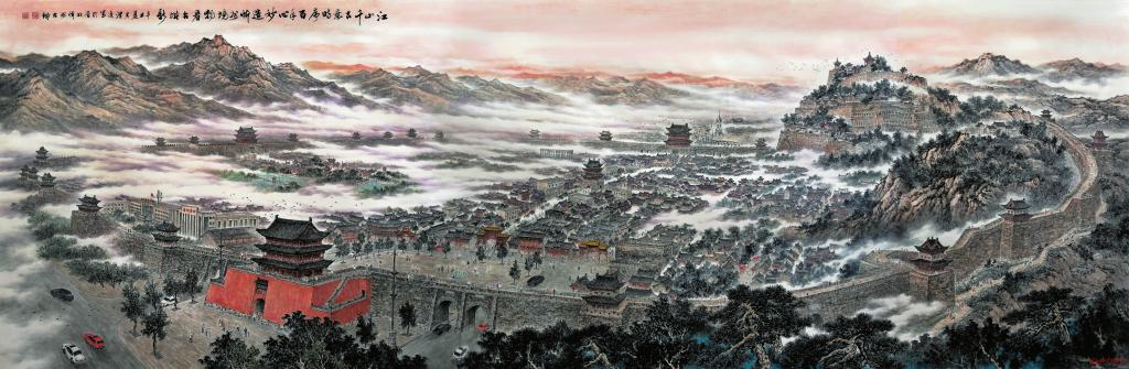 在堅(jiān)持不懈的學(xué)習(xí)和創(chuàng)作過(guò)程中,殷渭凌逐漸意識(shí)到,書畫藝術(shù)有其自身規(guī)律,并不存在固定模式,對(duì)于一個(gè)書畫家來(lái)說(shuō),確定個(gè)人藝術(shù)走向非常重要,想要表現(xiàn)的主題、內(nèi)容、情感最終會(huì)決定創(chuàng)作本身的價(jià)值。也正是清楚了這一點(diǎn),殷渭凌將自己的創(chuàng)作素材鎖定在熟悉和熱愛(ài)的故土上。他從家鄉(xiāng)的自然造化中選取創(chuàng)作對(duì)象,提煉感情和思想,然后加以調(diào)整、升華,最終呈現(xiàn)給觀者,讓大家看到了獨(dú)具韻味的黃河、太行、長(zhǎng)城、古鎮(zhèn)、雄關(guān)、窯洞、高原、古剎、佛塔等。