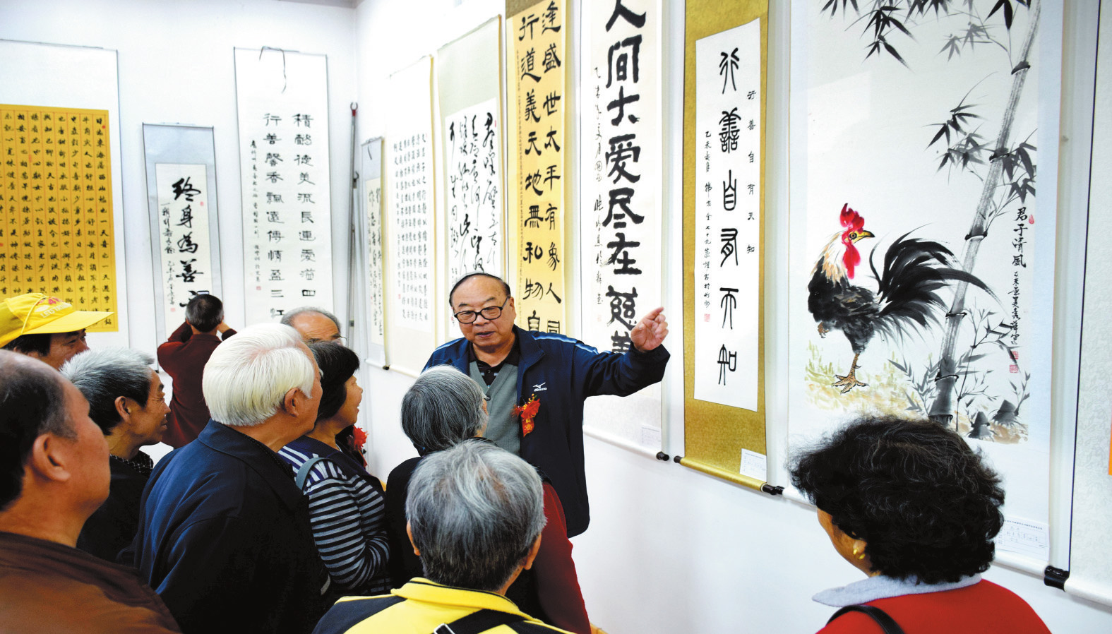 書(shū)畫(huà)展現(xiàn)場(chǎng),張啟明與書(shū)畫(huà)愛(ài)好者互動(dòng)