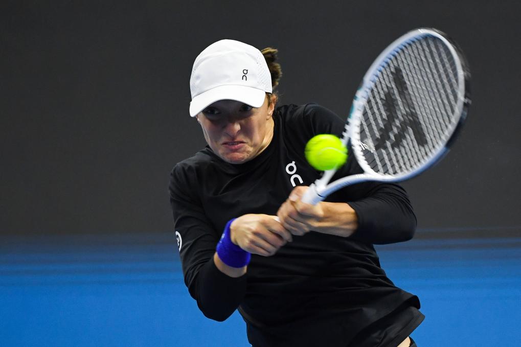 10月8日,斯維亞特克在2023中國(guó)網(wǎng)球公開(kāi)賽決賽中回球。新華社記者 鞠煥宗 攝
