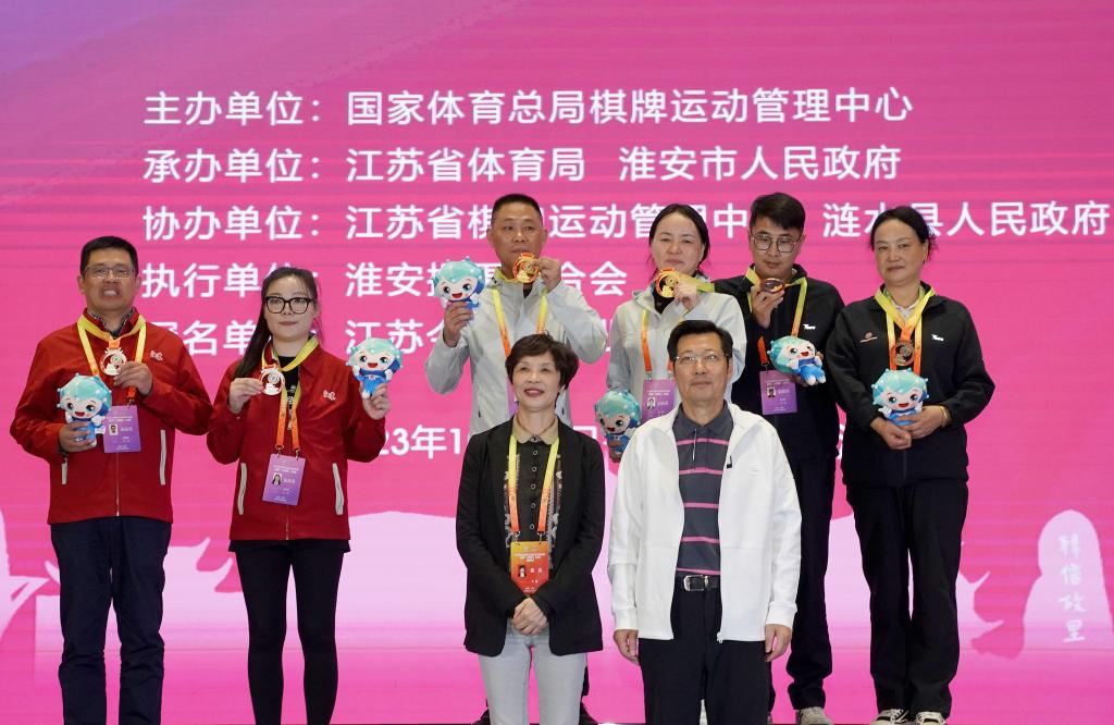 從18日預(yù)賽中脫穎而出的各組別前十名組合19日進(jìn)行了9輪豪威爾制比賽,最終江蘇隊獨得兩金,周笑宇/雍建軍獲得男子雙人組冠軍,王學(xué)琴/葛珍梅獲得女子雙人組冠軍;安徽隊的蔣莉/張榮理獲得混合雙人組冠軍。