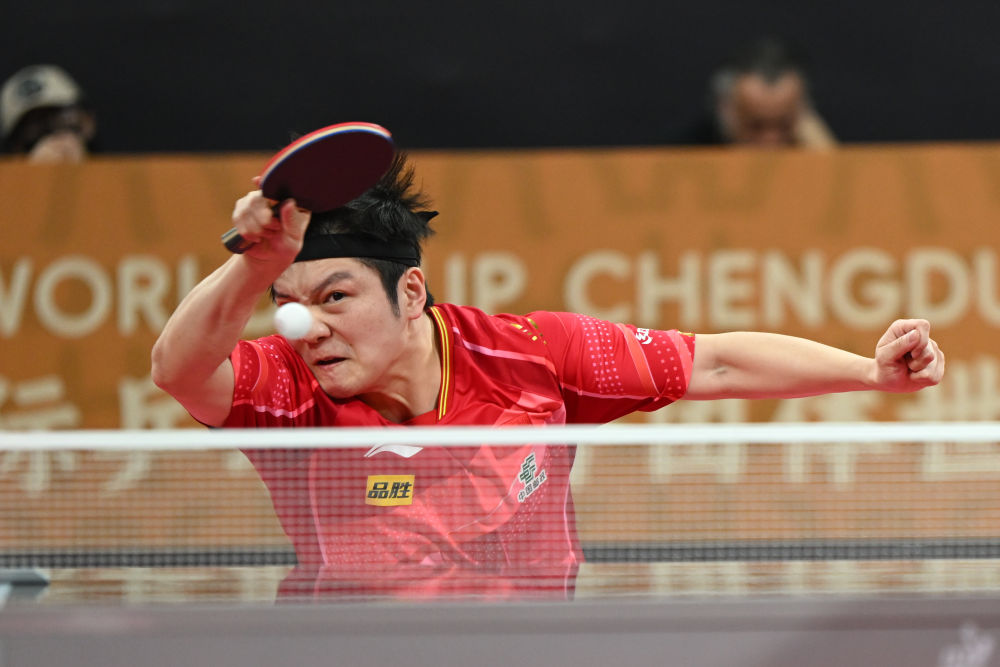 12月7日,中國隊選手樊振東在男單比賽中回球。新華社記者 胥冰潔 攝
