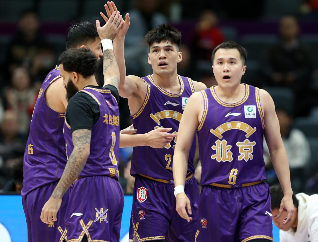 12月27日,北控隊(duì)球員陳國(guó)豪(右二)進(jìn)球后和隊(duì)友慶祝。新華社記者 雒圓 攝