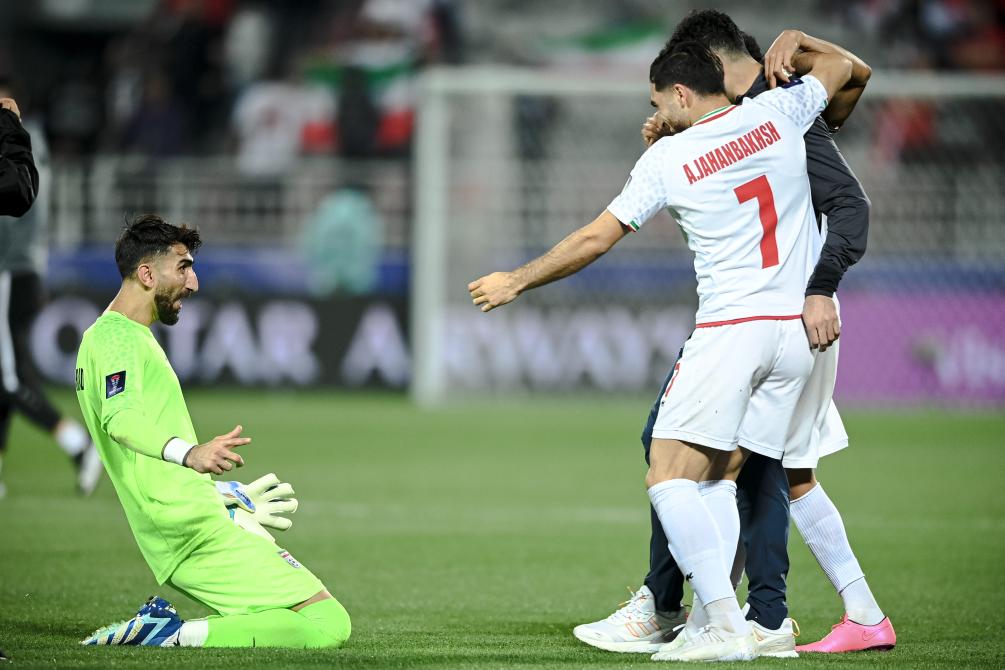 1月31日,伊朗隊(duì)守門員貝蘭萬徳(左)在賽后慶祝。新華社記者 江漢 攝
