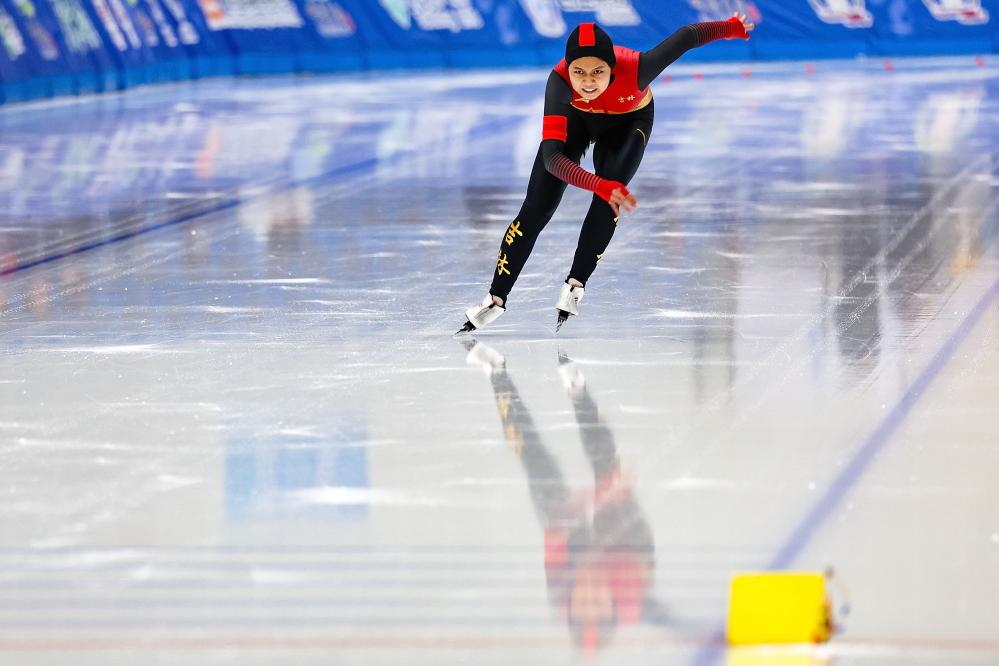 在女子1500米比賽中,該項(xiàng)目冬青奧會(huì)亞軍、吉林隊(duì)選手劉昀琪展現(xiàn)出良好的競(jìng)技狀態(tài),滑出1分59秒28,收獲本屆全冬會(huì)個(gè)人的第二枚金牌。