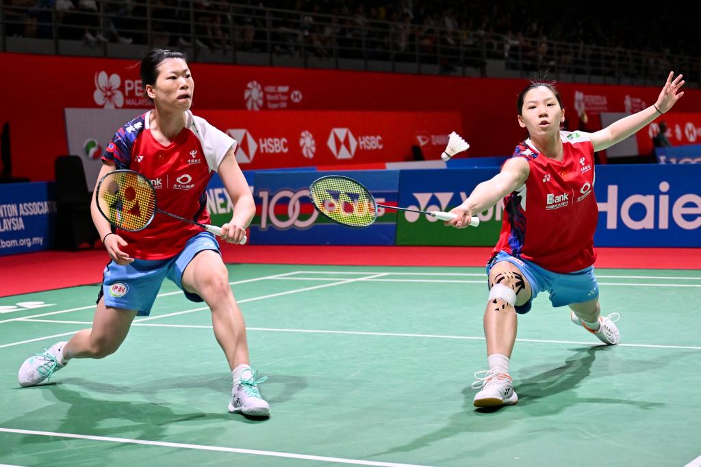 5月23日,李怡婧(右)/羅徐敏在比賽中。新華社記者 程一恒 攝