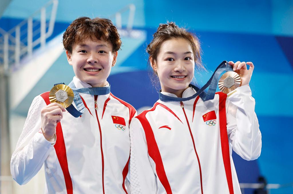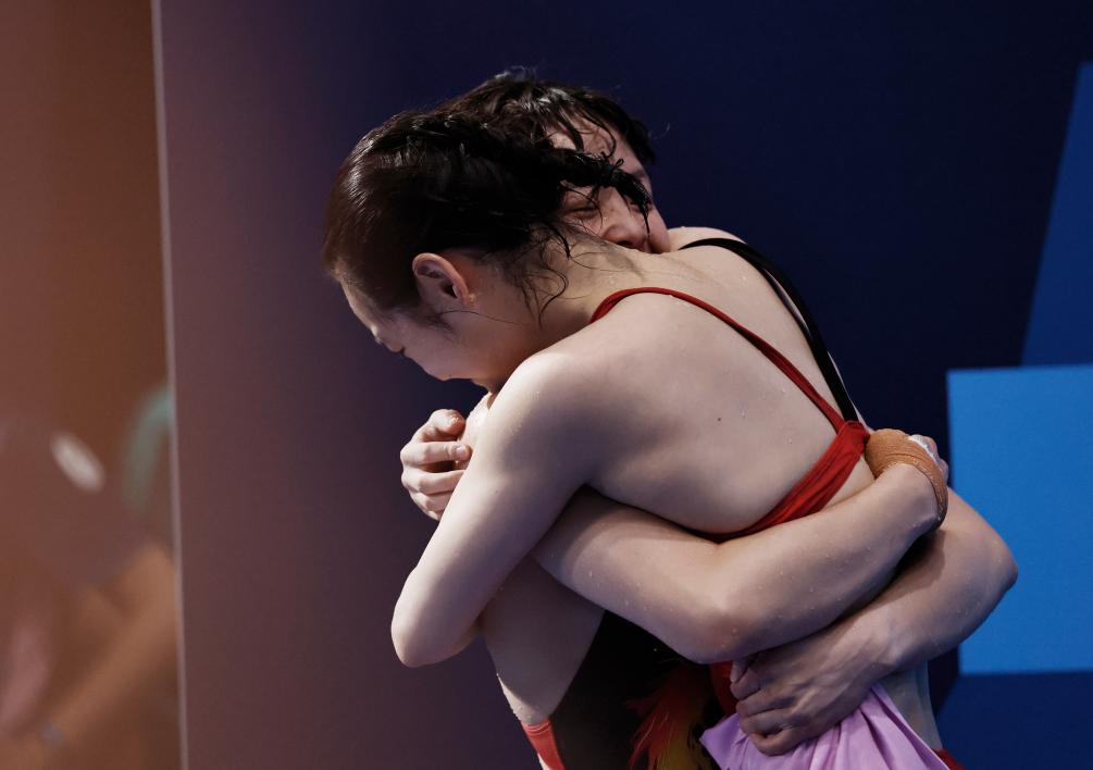 8月9日,陳藝文、昌雅妮在比賽后擁抱。新華社記者 張玉薇 攝 本屆奧運(yùn)會(huì)上,陳藝文和昌雅妮搭檔奪得雙人三米板金牌,是“夢(mèng)之隊(duì)”在巴黎的首金。和陳藝文相比,昌雅妮在單人項(xiàng)目上表現(xiàn)不太穩(wěn)定,預(yù)賽和半決賽發(fā)揮都有所欠缺。 決賽第一跳后,昌雅妮排在最后一名,但她及時(shí)調(diào)整狀態(tài),在第四輪后追到第三。 “第一跳之后意識(shí)到自己必須去把后面動(dòng)作質(zhì)量都跳出來,才有機(jī)會(huì)拼一拼?!辈拍菡f,“放開了,沒有什么好(有)壓力的,必須往前沖。我出現(xiàn)的問題都是自身技術(shù)環(huán)節(jié)的問題?!?/p>