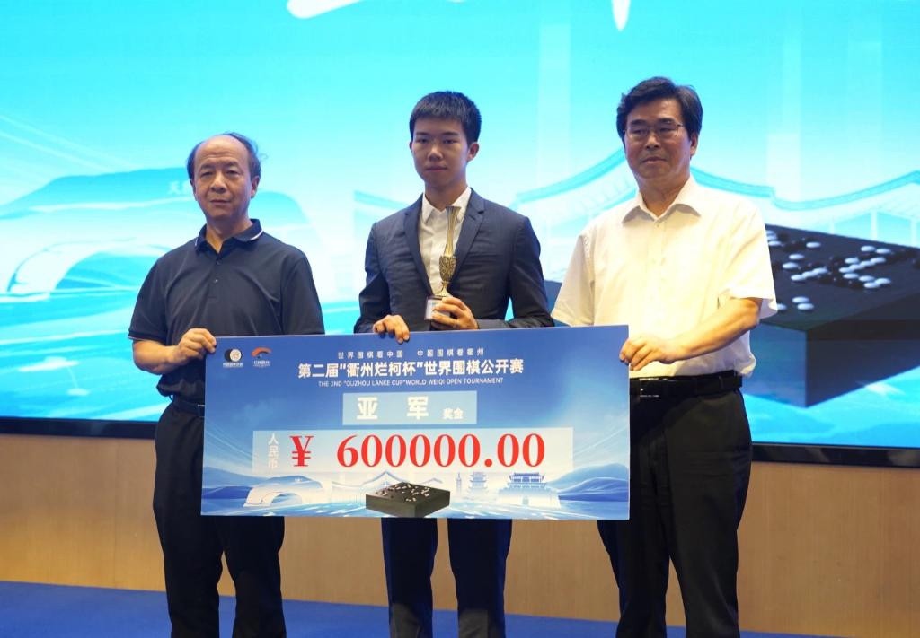 中國(guó)圍棋協(xié)會(huì)主席常昊等為參賽棋手頒獎(jiǎng)。本次比賽冠軍獎(jiǎng)金為180萬元人民幣,亞軍獎(jiǎng)金為60萬元人民幣。