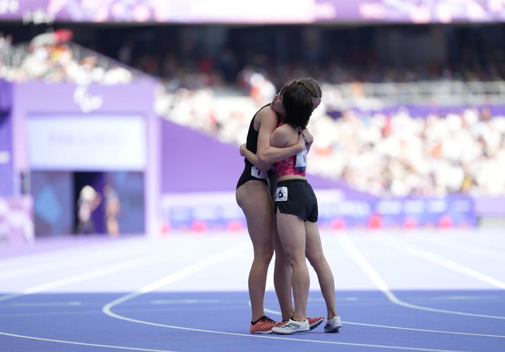 這是1日巴黎殘奧會(huì)女子200米T36級決賽中的一幕。中國選手史逸婷以27秒50的成績力壓該項(xiàng)目世界紀(jì)錄保持者、新西蘭選手丹妮爾奪冠,同時(shí)打破殘奧會(huì)紀(jì)錄。撞線后的史逸婷,趴在丹妮爾身上許久直不起身。