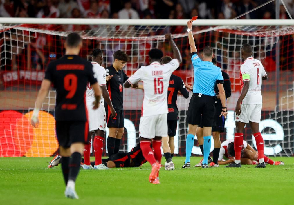 摩納哥主場迎戰(zhàn)巴薩的比賽中,開場第10分鐘,客隊門將特爾施特根后場出球失誤,埃里克·加西亞不得不在弧頂處犯規(guī),放倒了斷球的南野拓實,主裁判將加西亞紅牌罰下。巴薩不得不以10人應戰(zhàn)。