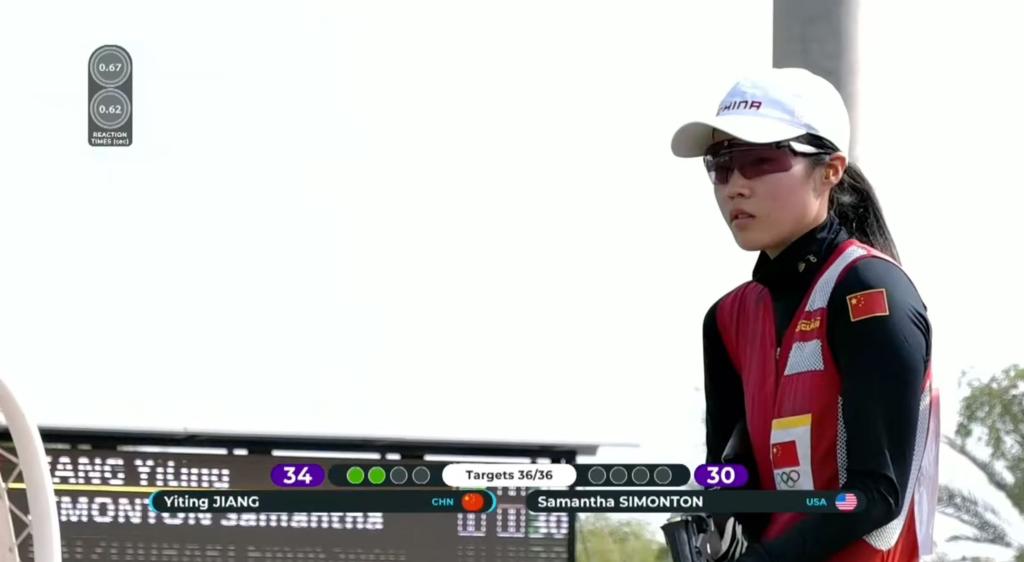 決賽中,21歲的江伊婷延續(xù)火熱手感,前32靶全部命中,以領先美國選手薩曼莎·西蒙頓2中的優(yōu)勢晉級最后的決勝輪。隨后,率先出場的江伊婷4靶全中,以滿中成績提前奪冠。西蒙頓最終以34中獲得亞軍,希臘選手埃瑪努埃拉·卡楚拉基獲季軍。另一位晉級決賽的中國選手車雨霏以24中排名第四。