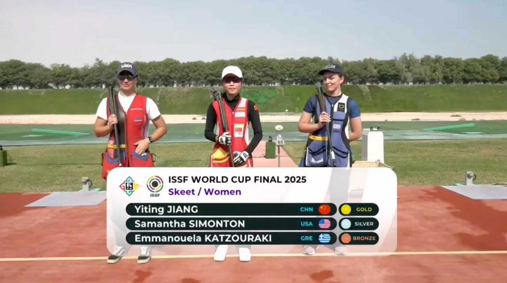 新華社多哈12月8日電 2025年國際射聯(lián)世界杯總決賽8日在多哈收官,中國選手江伊婷在女子雙向飛碟決賽中彈無虛發(fā),以36靶全中的成績奪冠。中國隊最終以4金2銀3銅位居獎牌榜榜首。