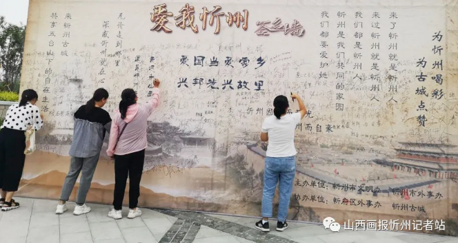 在遺山公園舉行志愿活動(dòng)的志愿者們興奮地簽下名字后這樣說(shuō):“忻州是我們共同的家園,創(chuàng)建文明城市人人有責(zé)。今天我們?cè)诖藢懴铝俗约旱拿趾蛯?duì)家鄉(xiāng)的深深祝福,這是一面見(jiàn)證墻,更是一面承諾墻,相信忻州會(huì)越來(lái)越好!”