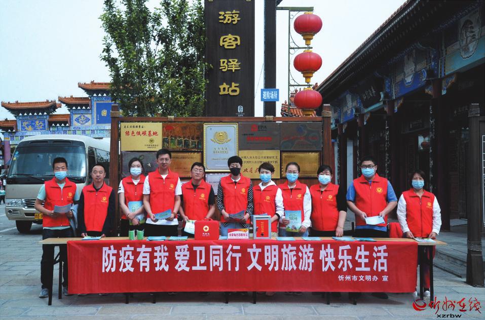志愿者為過(guò)往群眾發(fā)放創(chuàng)文宣傳資料 本報(bào)通訊員 攝