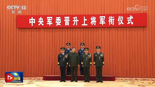 | 中央軍委舉行晉升上將軍銜儀式 習(xí)近平頒發(fā)命令狀并向晉銜的軍官表示祝賀 |