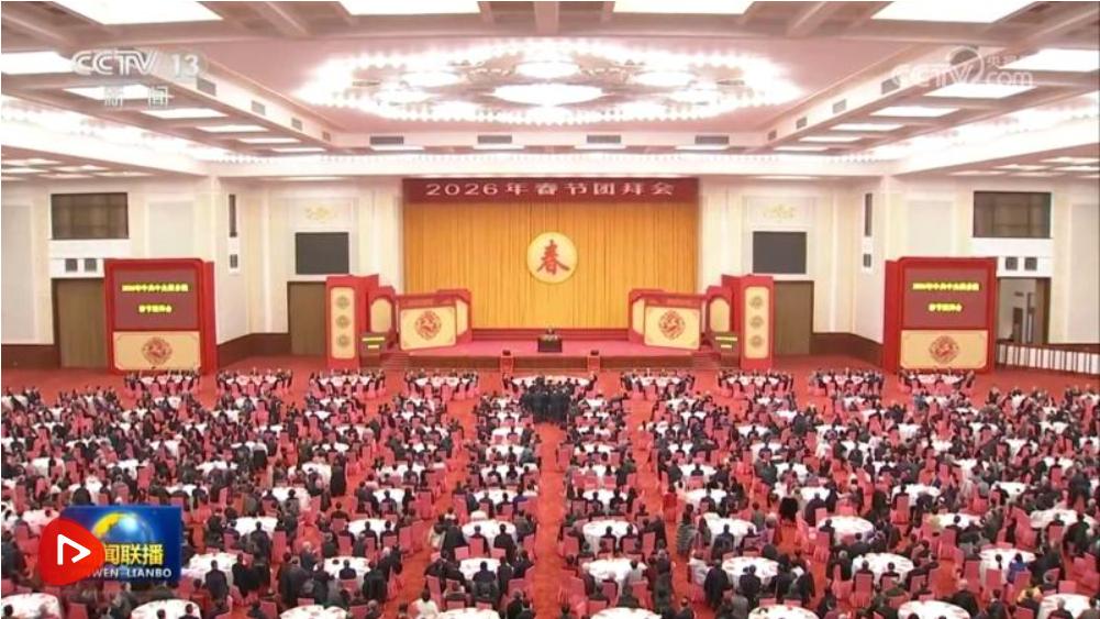 中共中央、國務(wù)院14日上午在人民大會堂舉行2026年春節(jié)團(tuán)拜會。中共中央總書記、國家主席、中央軍委主席習(xí)近平發(fā)表講話,代表黨中央和國務(wù)院,向全國各族人民,向香港特別行政區(qū)同胞、澳門特別行政區(qū)同胞、臺灣同胞和海外僑胞拜年。