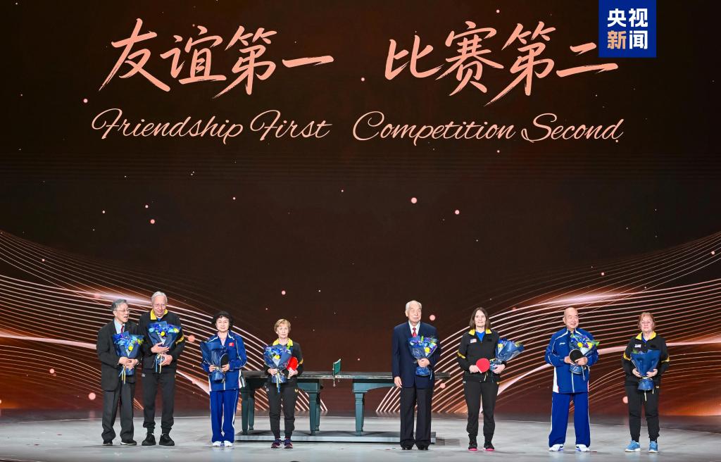 △2026年4月10日,“乒乓外交”親歷者出席中美“乒乓外交”55周年紀(jì)念大會(huì)。