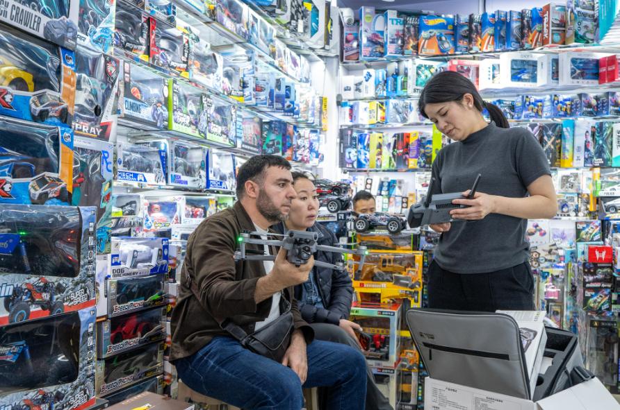 2026年4月1日,外商在浙江義烏國(guó)際商貿(mào)城洽談采購(gòu)小商品。