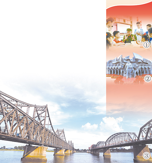 圖③:鴨綠江上的中朝友誼橋(左)和鴨綠江斷橋(右)。本報(bào)記者 陳尚文攝
