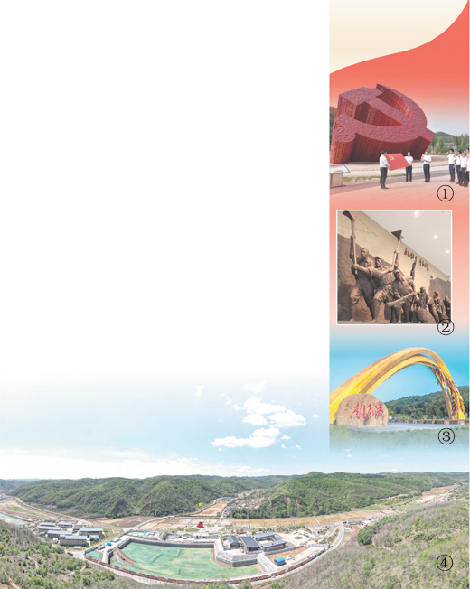 圖①:參觀學(xué)習(xí)團(tuán)隊在南泥灣黨徽廣場重溫入黨誓詞。祁小軍攝(人民視覺)